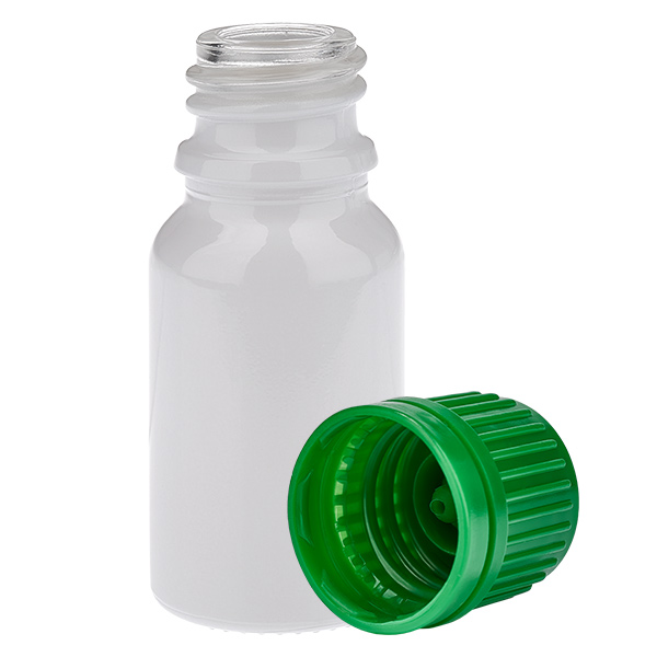 - Apothekersflesje met 18 mm schroefdraad (UT18). Compleet met schroefdop.