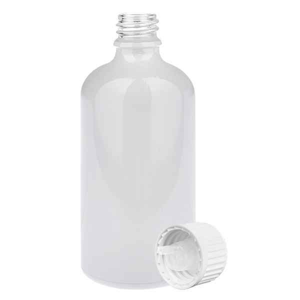 - Apothekersfles met 18 mm schroefdraad (UT18). Compleet met schroefdop.