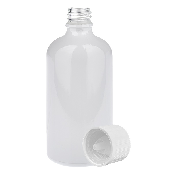 100 ml druppelfles met witte standaard schroefdop & kindveilige sluiting (1,2 mm opening) WhiteLine UT18/100