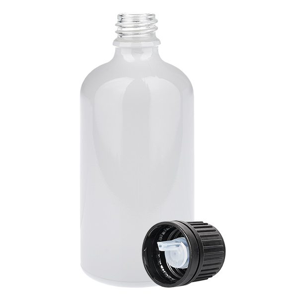 - Apothekersfles met 18 mm schroefdraad (UT18). Compleet met schroefdop.