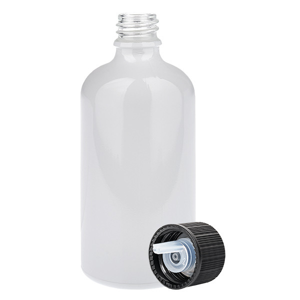 - Apothekersfles met 18 mm schroefdraad (UT18). Compleet met schroefdop.