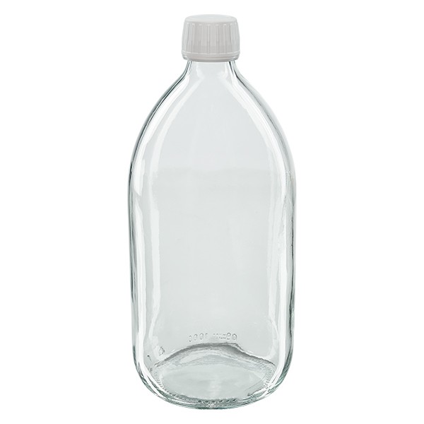 1000ml Euro-medicijnfles helder met witte schroefsluiting VR