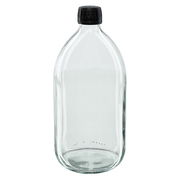 1000ml Euro-medicijnfles helder met zwarte schroefsluiting VR