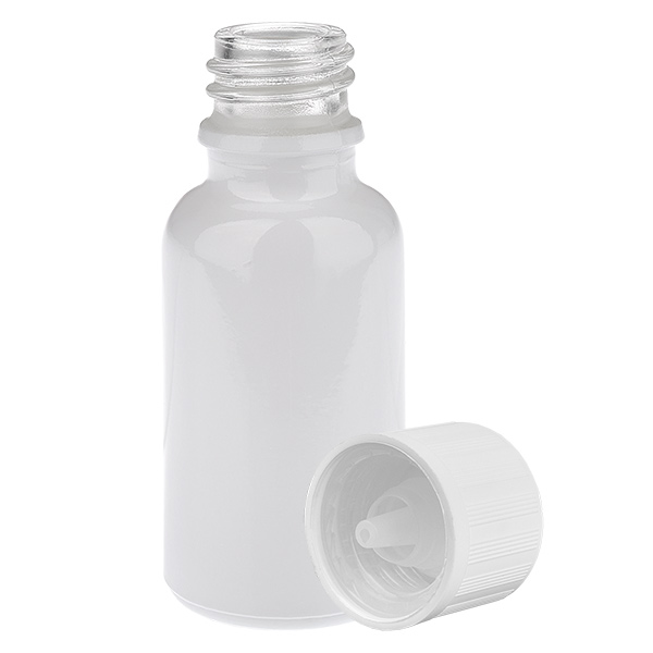 20 ml druppelfles met witte standaard schroefdop & kindveilige sluiting (1,2 mm opening) WhiteLine UT18/20