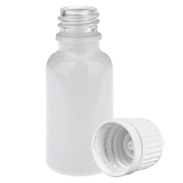 - Apothekersflesje met 18 mm schroefdraad (UT18). Compleet met schroefdop.