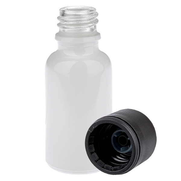 - Apothekersflesje met 18 mm schroefdraad (UT18). Compleet met schroefdop.