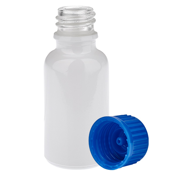 - Apothekersfles met 18 mm schroefdraad (UT18). Compleet met schroefdop.