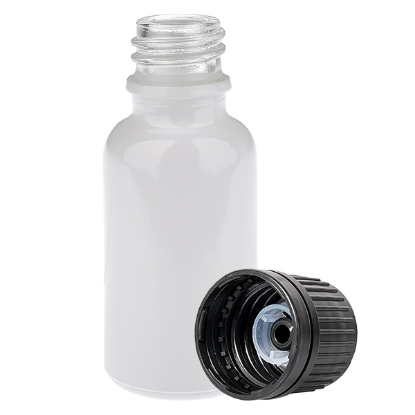 - Apothekersflesje met 18 mm schroefdraad (UT18). Compleet met schroefdop.