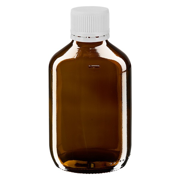 200ml Euro-medicijnfles bruin met witte schroefsluiting VR