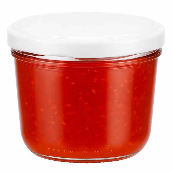 - Toepassing deksel: Laat bij het inblikken voldoende luchtruimte boven de inhoud (ca. 7%, twee vingerbreedtes) en warm goed op voordat je het deksel dichtschroeft, zodat de afdichting elastisch wordt. Meer informatie hierover vind je in de meegeleverde instructies.