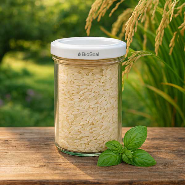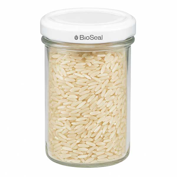 - Complete BioSeal deksels van UNiTWIST. Deze speciale deksels zijn PVC-vrij, weekmakervrij (ESBO) en hebben een BPA-vrije coating. Zelfs bij vettige/olieachtige inhoud is migratie van deze stoffen in de inhoud uitgesloten. Het gebruik van PVC-vrije BioSeal deksels wordt aanbevolen of voorgeschreven voor biologische producten.