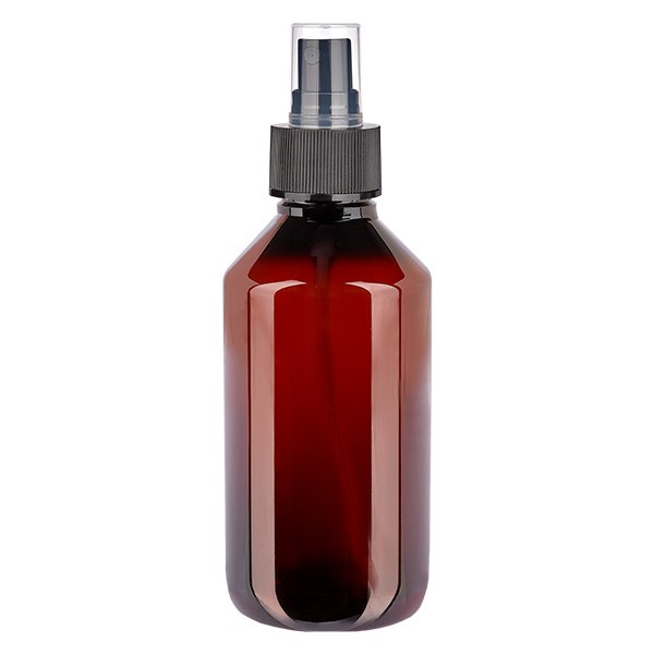 250 ml PET medicijnfles met verstuiver zwart GCMI 28/410 incl. dop transparant, standaard