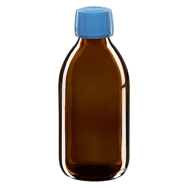 250ml Euro-medicijnfles bruin met blauwe schroefsluiting VR