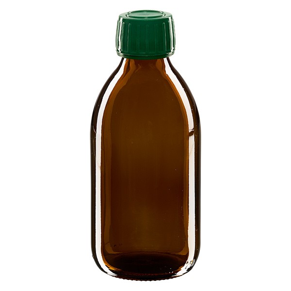 250ml Euro-medicijnfles bruin met groene schroefsluiting VR