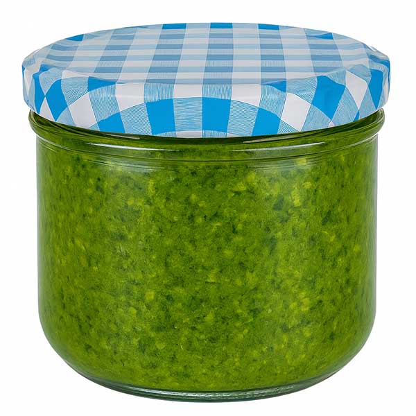 - Toepassing deksel: Laat bij het inblikken voldoende luchtruimte boven de inhoud (ca. 7%, twee vingerbreedtes) en warm goed op voordat je het deksel dichtschroeft, zodat de afdichting elastisch wordt. Meer informatie hierover vind je in de meegeleverde instructies.