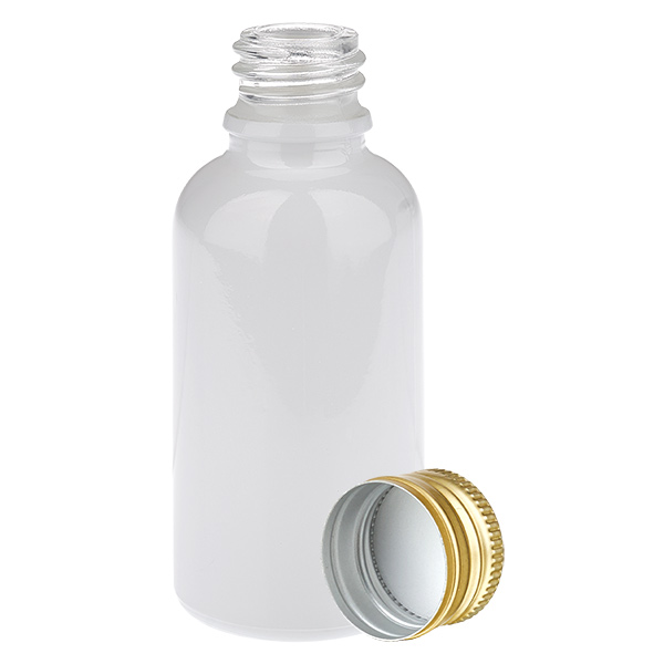 - Beschrijving van de glazen fles: glas type III (DIN 719 resp. recipiëntklasse III volgens DIN 52339-TO180). Helder glas wordt in een complex proces aan de buitenkant voorzien van een glanzend witte coating. Dit zorgt voor een hoogwaardige presentatie van de inhoud. U kunt het vulniveau van de fles zien. De inhoud wordt toch beschermd tegen direct zonlicht.