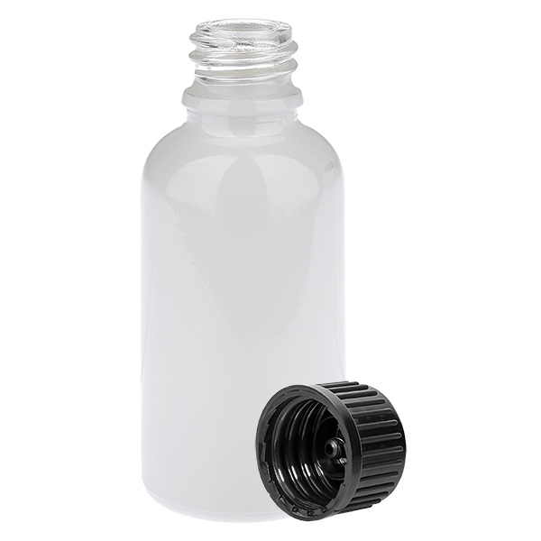 - Apothekersfles met 18 mm schroefdraad (UT18). Compleet met schroefdop.