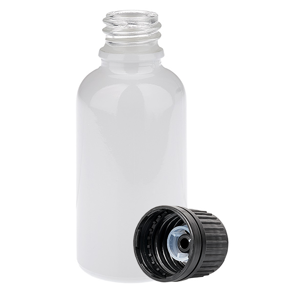 - Apothekersflesje met 18 mm schroefdraad (UT18). Compleet met schroefdop.