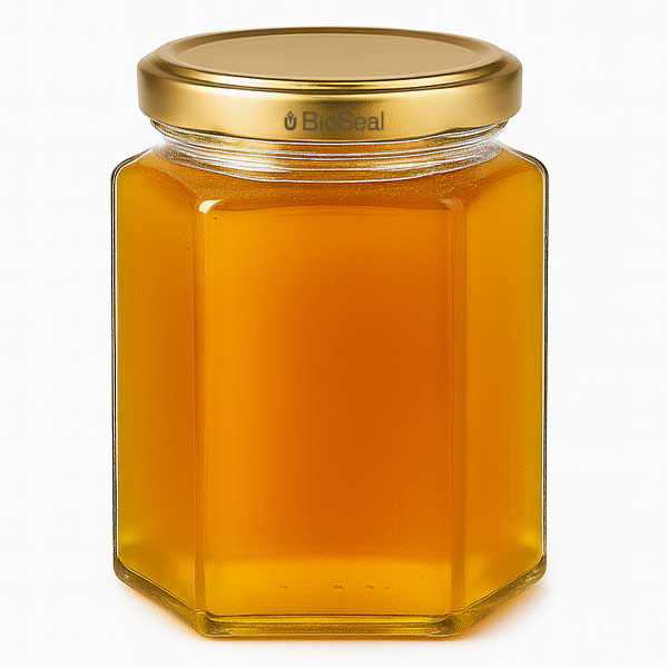UNITWIST Hexa 390ml met gouden Twist-Off deksel TO70 bestellen op glazen-en-potten.nl • Directe...