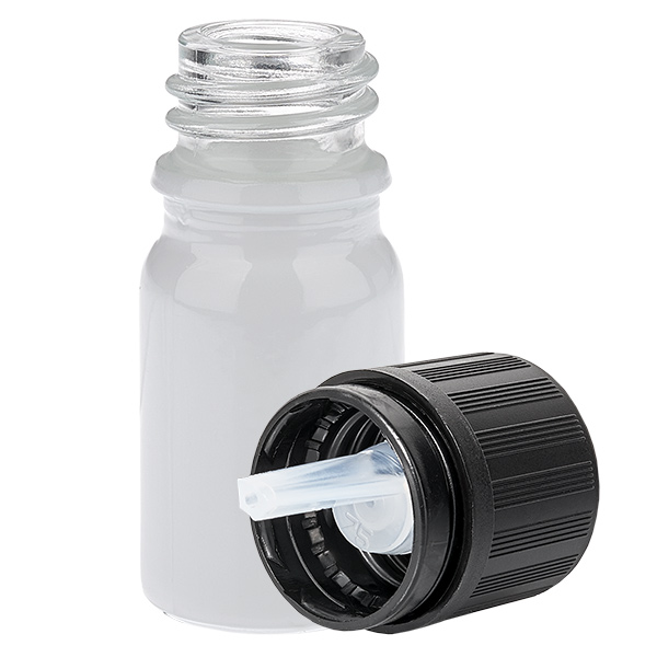 5 ml flesje met zwarte standaard druppelsluiting met kindveilige sluiting (1 mm opening) WhiteLine UT18/5