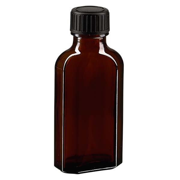 50 ml bruine meplatfles met DIN 22 monding, inclusief schroefsluiting DIN 22 zwart van LKD