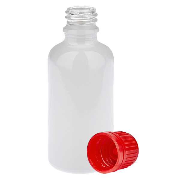 - Apothekersfles met 18 mm schroefdraad (UT18). Compleet met schroefdop.