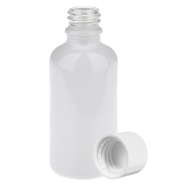 - Beschrijving van de glazen fles: Glassoort III (DIN 719 resp. recipiëntklasse III volgens DIN 52339-TO180). Helder glas wordt in een uitgebreid proces aan de buitenkant voorzien van een glanzend witte coating. Dit zorgt voor een hoogwaardige presentatie van de inhoud. U kunt het vulniveau van de fles zien. De inhoud wordt toch beschermd tegen direct zonlicht.