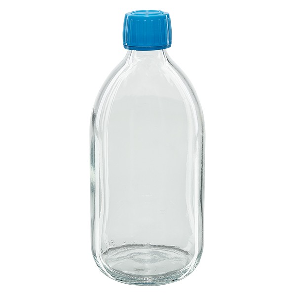 500ml Euro-medicijnfles helder met blauwe schroefsluiting VR