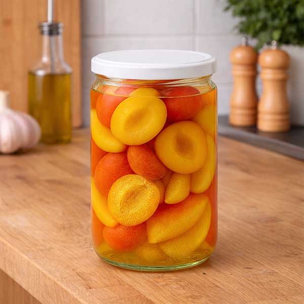 - Toepassing deksel: Laat bij het inblikken voldoende luchtruimte boven de inhoud (ca. 7%, twee vingerbreedtes) en warm goed op voordat je het deksel dichtschroeft, zodat de afdichting elastisch wordt. Meer informatie hierover vind je in de meegeleverde instructies.