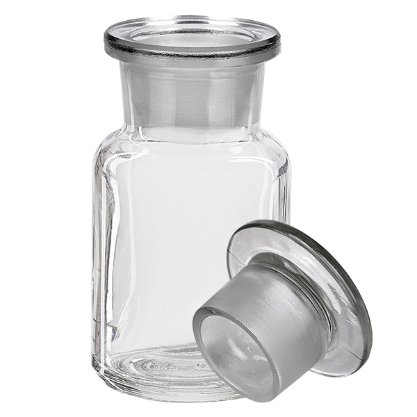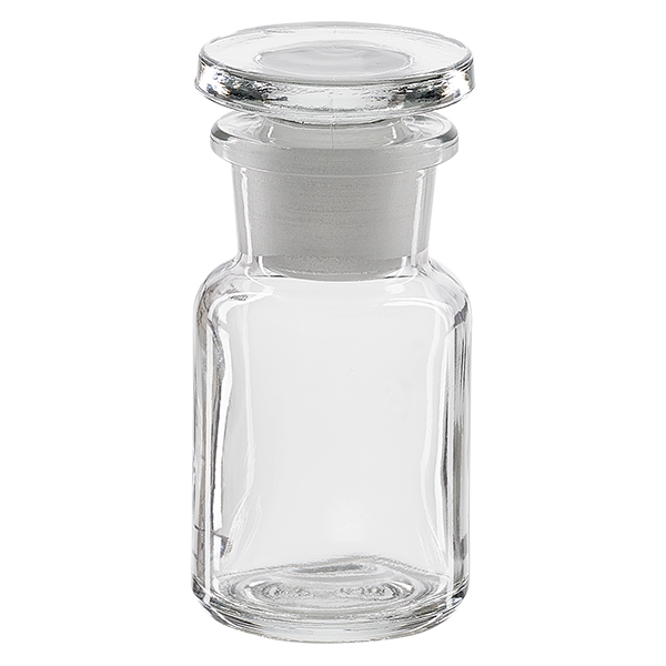 Apothekersfles 50 ml wijde hals helder glas incl. glazen stop
