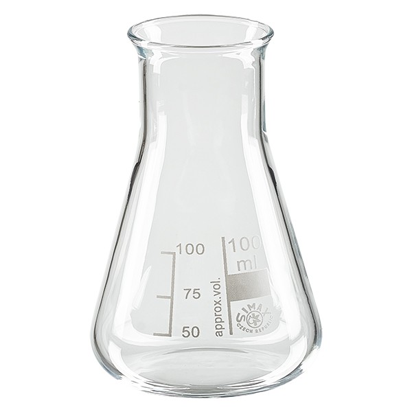 100ml Erlenmeyer wijde hals van hoogwaardig borosilicaatglas met afgeronde rand nu tegen top...
