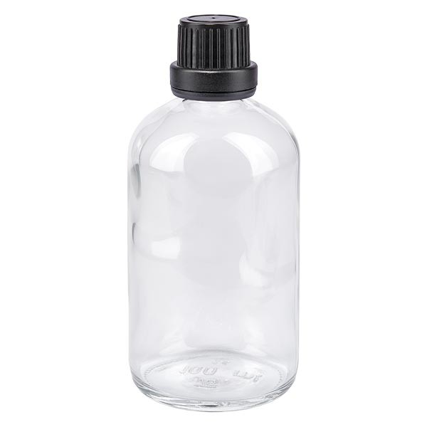 Helder glazen flessen 100ml met zwart druppelsluiting 2mm VR
