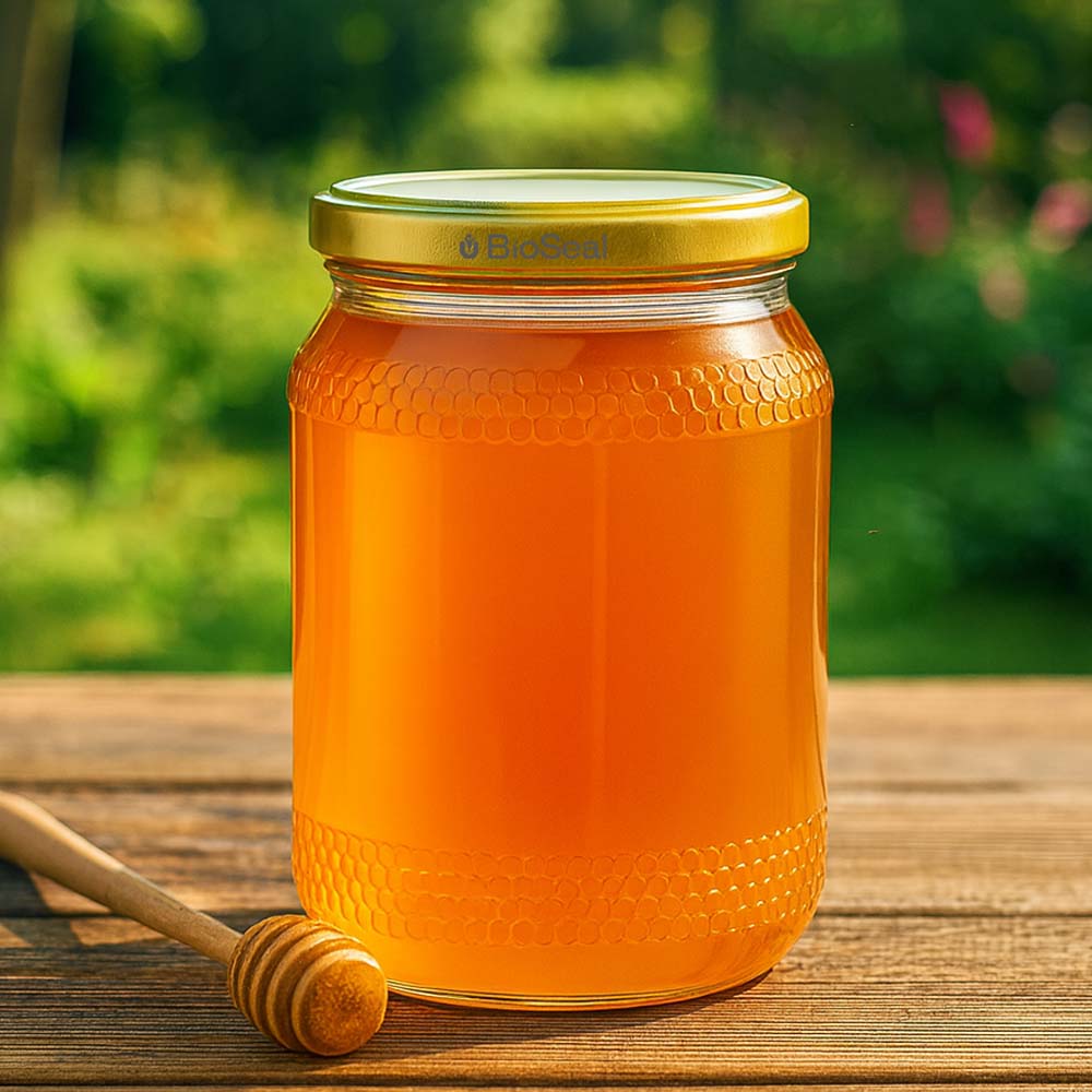 Stevige honingpot 1260 g met gouden BioSeal UNiTWIST-deksel – ideaal voor verkoop, geschenksets...