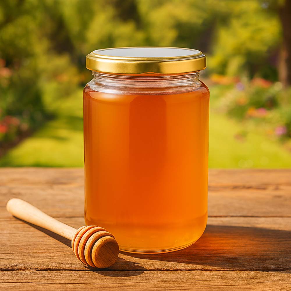 Stevige honingpot 450 g met gouden BasicSeal UNiTWIST-deksel – ideaal voor verkoop, geschenksets...
