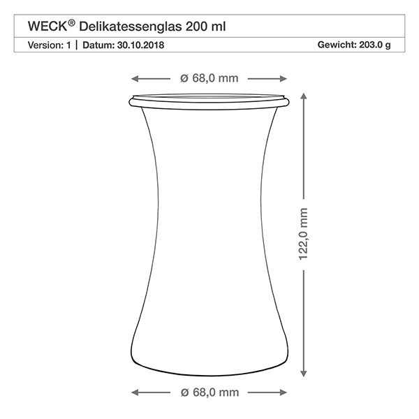Uitvoering : WECK-delicatessenglas 200ml onderstuk