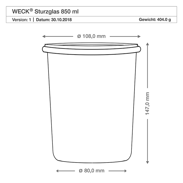 - Ausführung: WECK-Sturzglas 850 ml mit Unterteil und Deckel